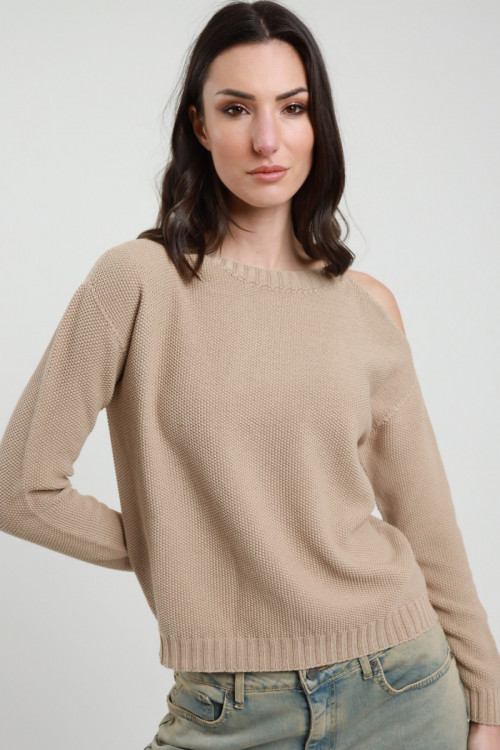 Baumwollstrickpullover mit Cut-Out an der Schulter. 100 % co