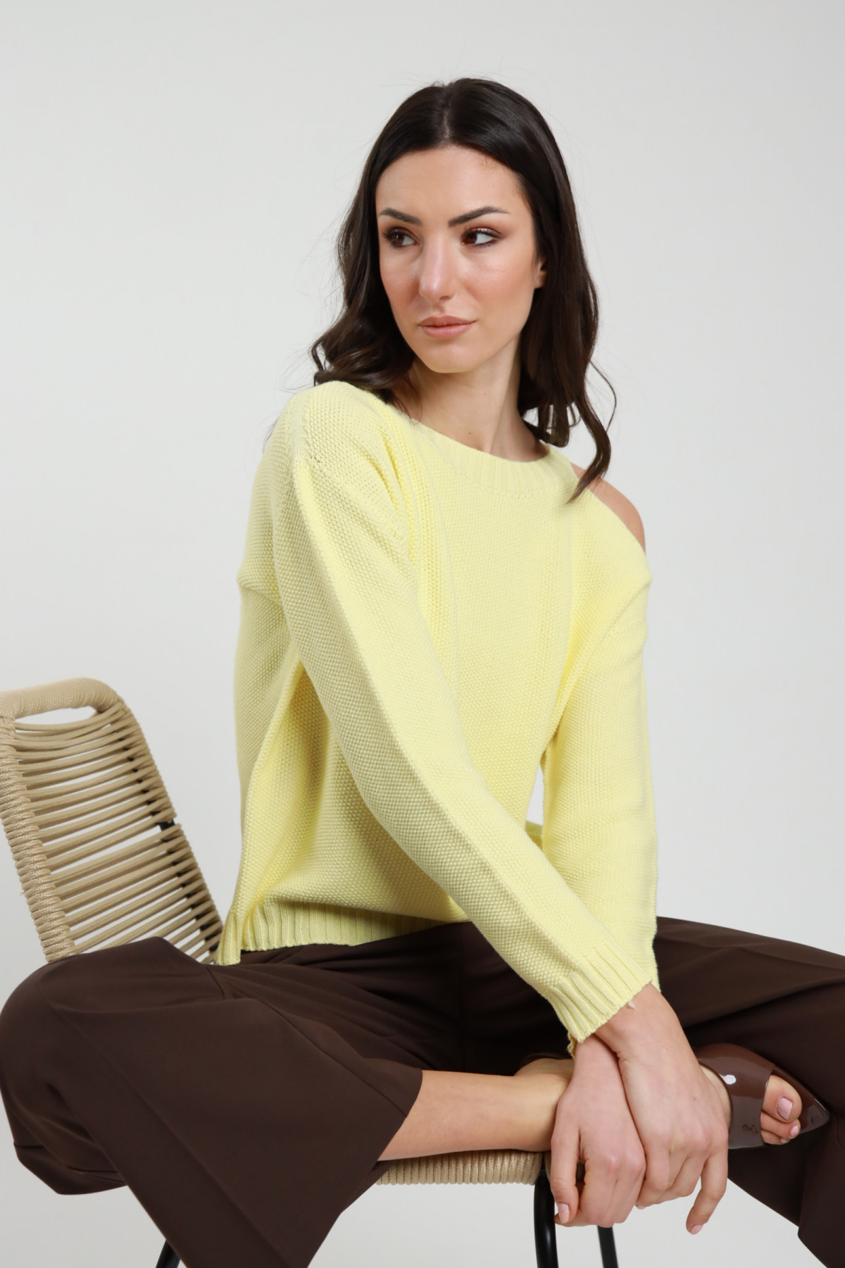 Baumwollstrickpullover mit Cut-Out an der Schulter. 100 % co