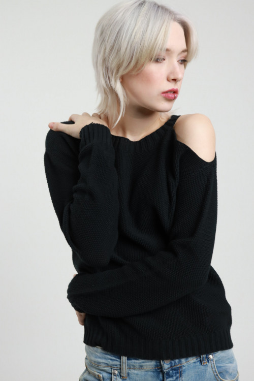 Baumwollstrickpullover mit Cut-Out an der Schulter. 100 % co