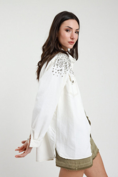 Jeanshemd mit Strasssteinen auf den Schultern. 95%co 5%pl
