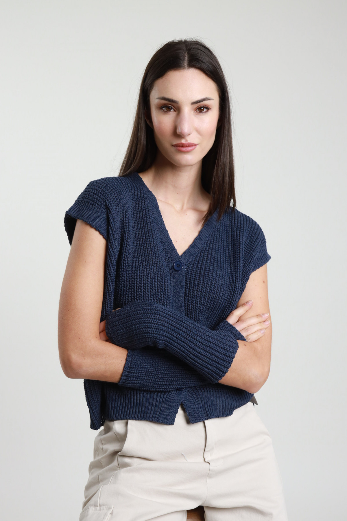 Gestrickte Weste mit Ärmeln und Knopfverschluss. 50%Co 50%Stk