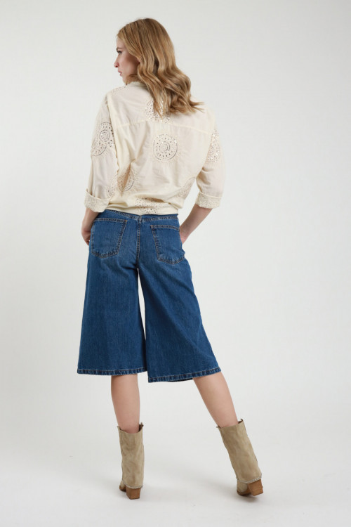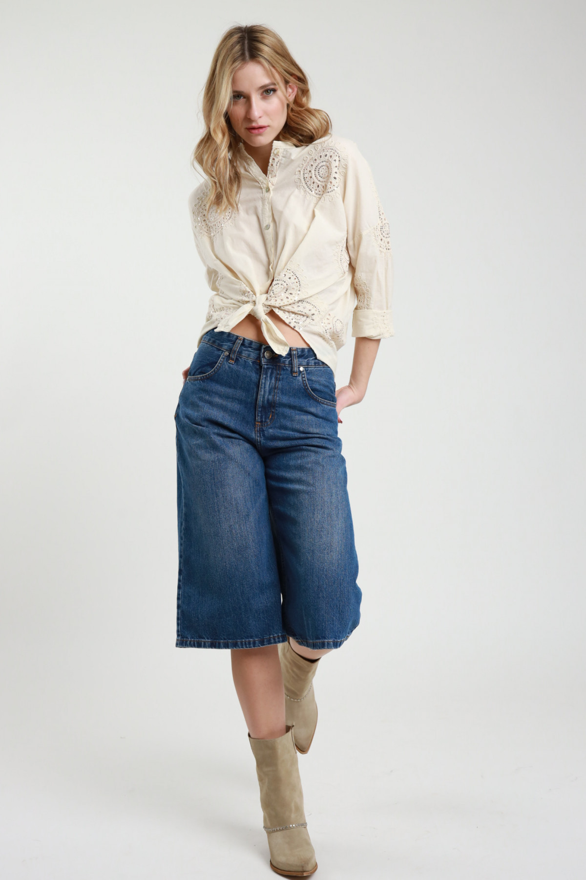 Bestickte Halbarmbluse mit Rüschen und Spitze am Ausschnitt, Gummizug unter der Brust und Puffärmeln. 49 % 30 % pl 21 % pa