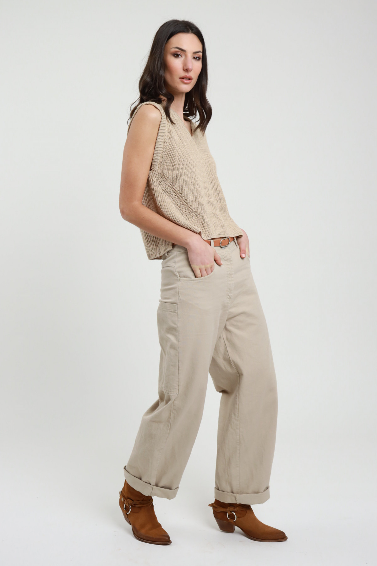 Pantalone c/pieghe fondo 58%vi 31%ny 11%pl