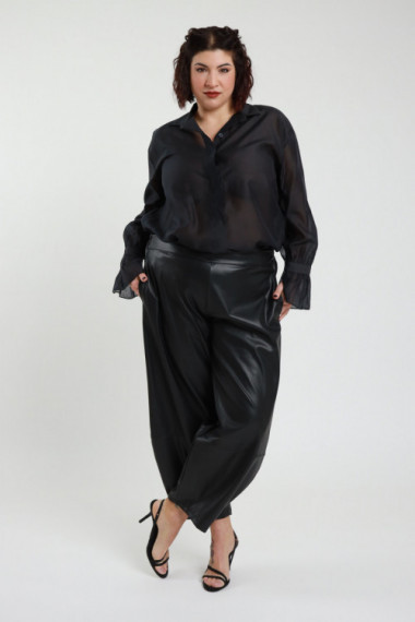Baggy-Hose aus Öko-Leder mit elastischem Bund – Curvy Susy Star-Linie.  50 % pl 50 % pu