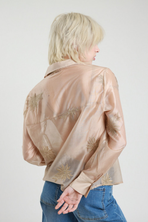 Halbtransparentes Hemd mit Blumenstickerei. 85%tn 15%pl