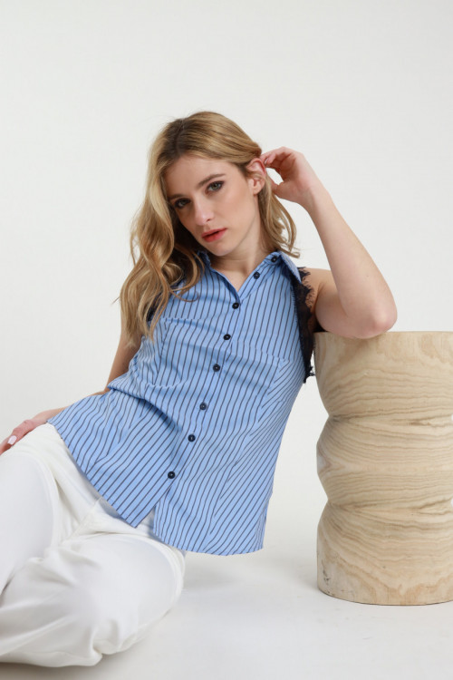 Classic cut shirt with striped stitching on the front, semi-transparent. 85%tn 15%pl