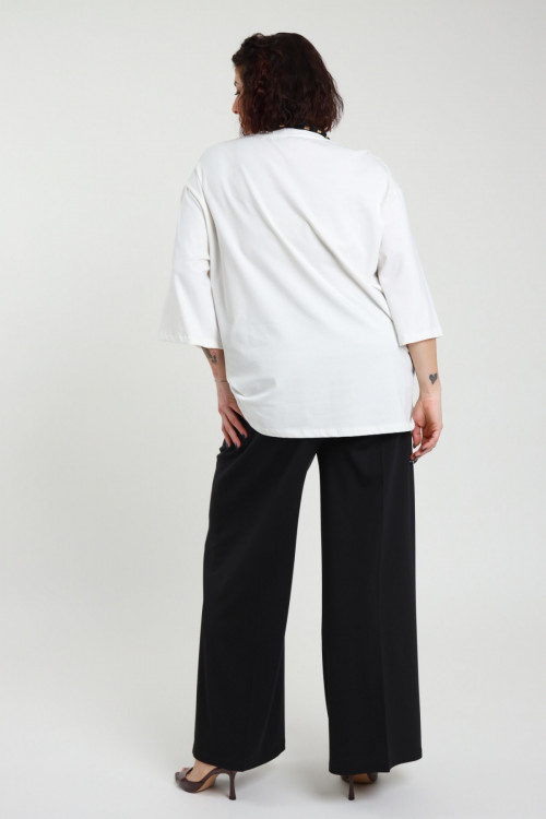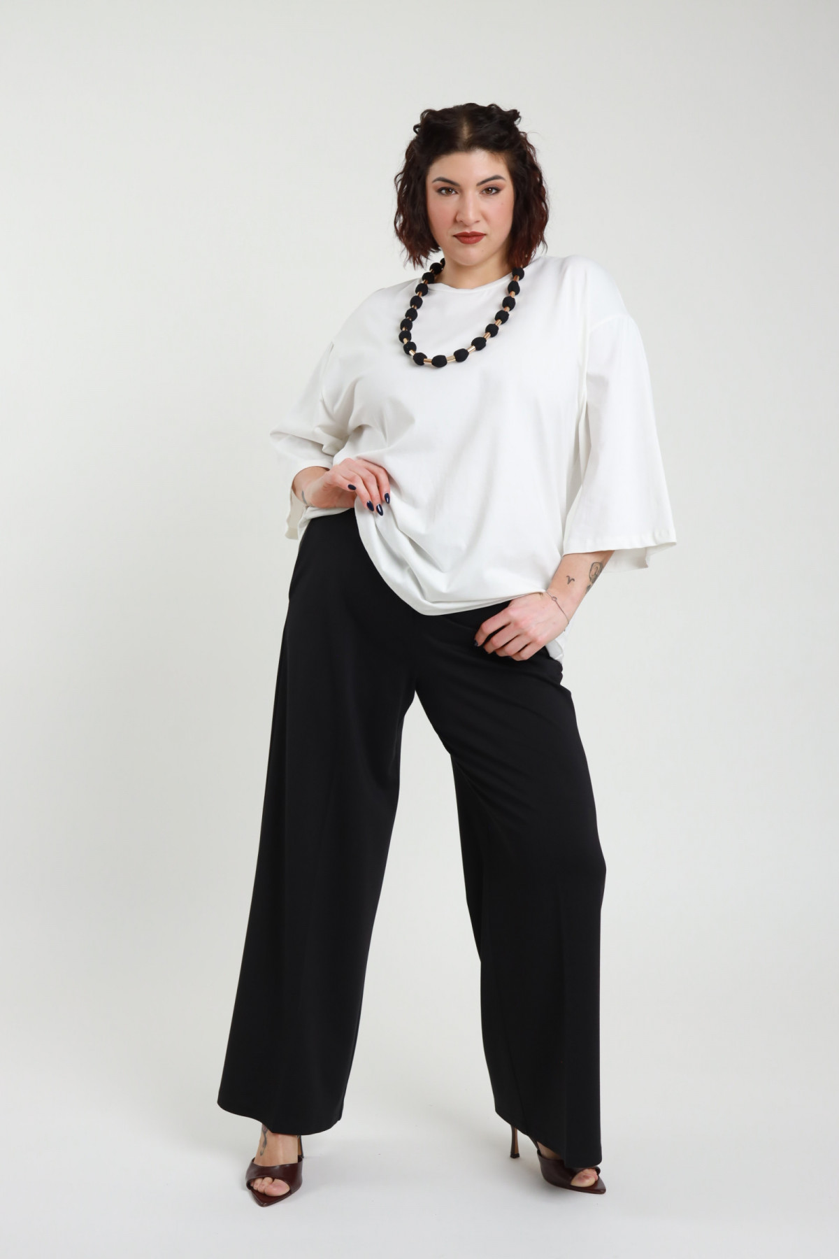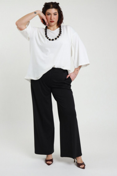 T-Shirt Over in Cotone Elasticizzato con Dettaglio Frange sulle Maniche - Linea Curvy Susy Star.