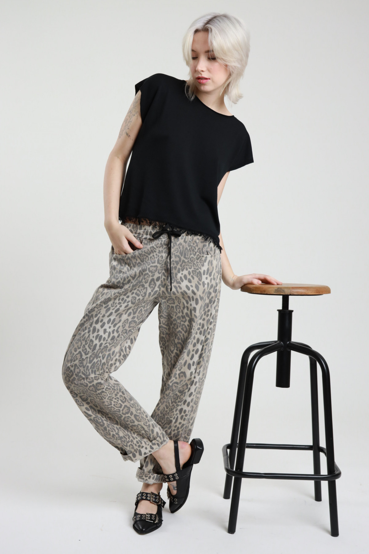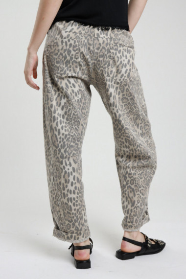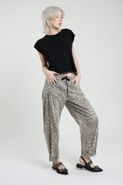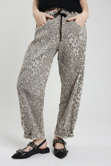 Baumwollhose mit Kordelzug in der Taille und gepunktetem Animal-Print. 100 % co