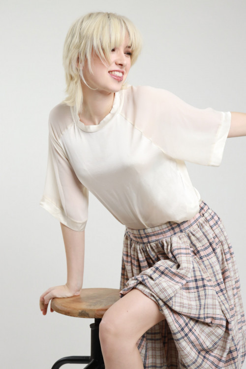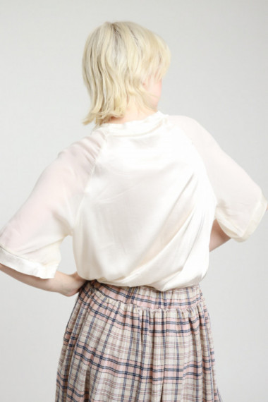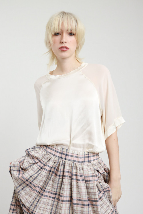 T-shirt Over Girocollo in Viscosa Elasticizzata, Effetto Raso con Inserto sulle Maniche in Georgette Semitrasparente. 97%vi 3%ea