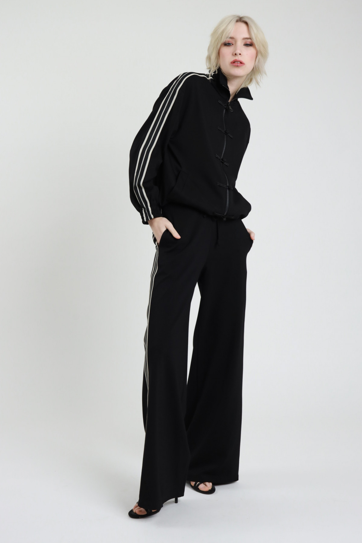 Completo Giacca Kimono con Chiusura Nodo + Pantalone Gamba Dritta con Elastico in Vita.