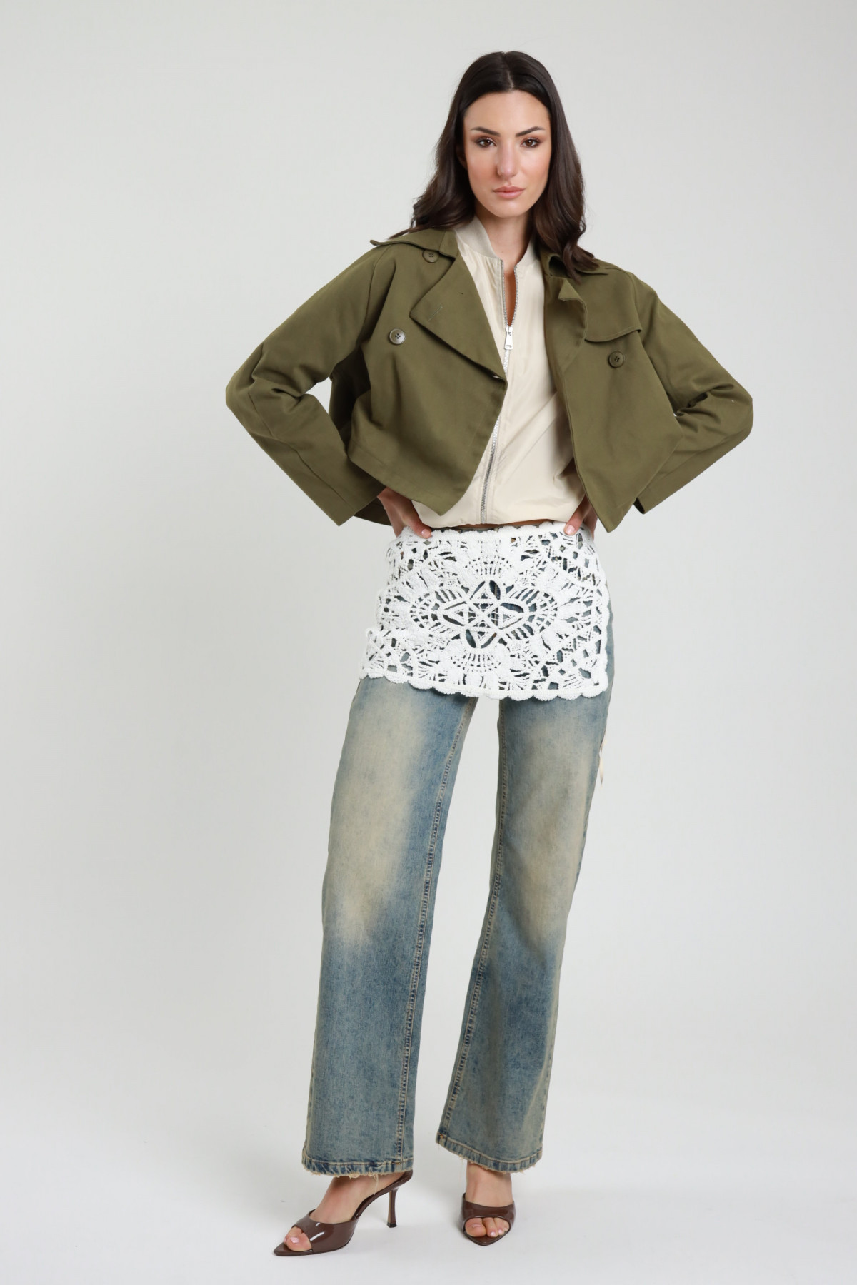 Bermuda Over in Denim in Fantasia Animalier Maculata Floreale Sbiadita.