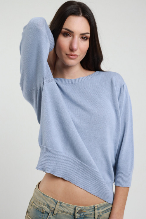 Maglia in Cotone Punto Riso Manica 3/4, Scollo Barchetta.