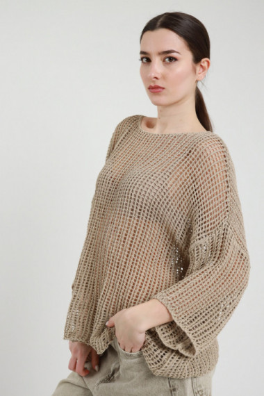 Maglioncino Punto Pannocchia, Scollo Leggermente A Barchetta Con Spacchi Laterali.