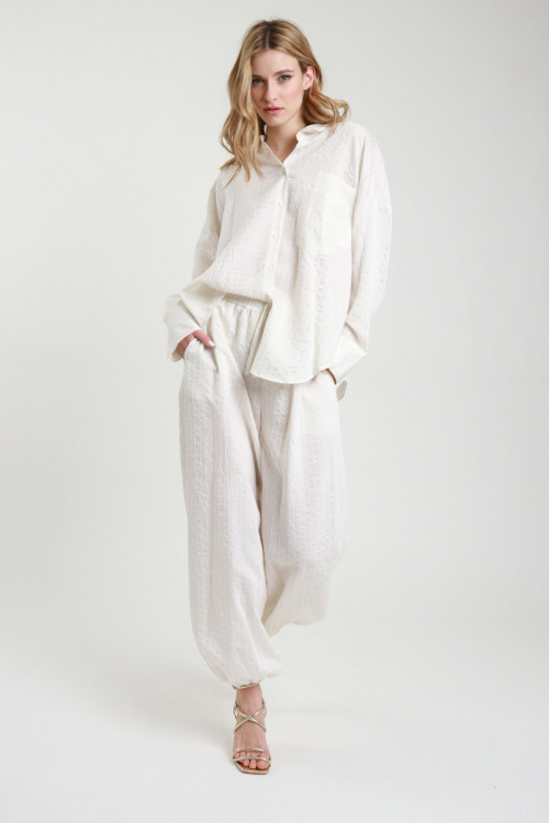 Completo in Fluido con Blusa con Cappuccio e Pantalone con Elastico in Vita.