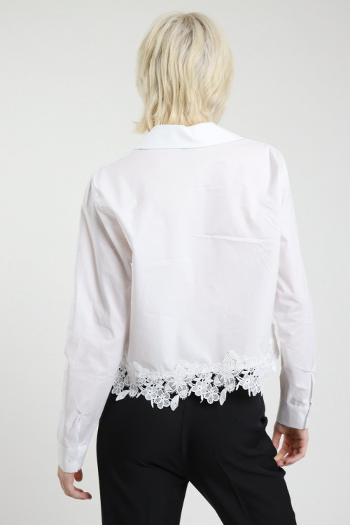 Camicia Gessata con Taschino Applicato con Dettaglio Pizzo.
