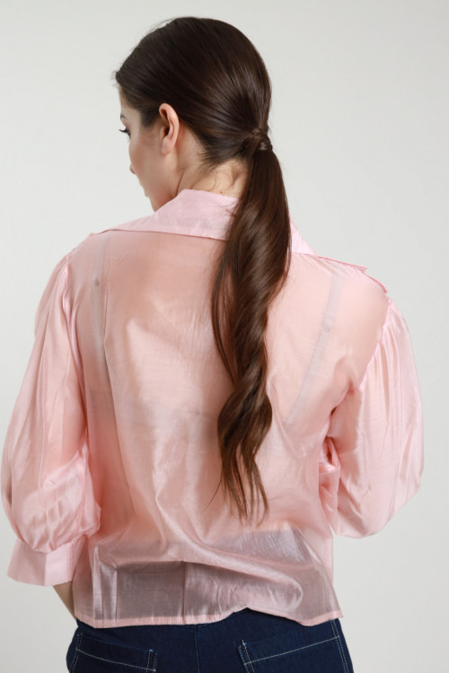 Camicia Semitrasparente con Rouches sui Polsi in Fantasia Floreale.