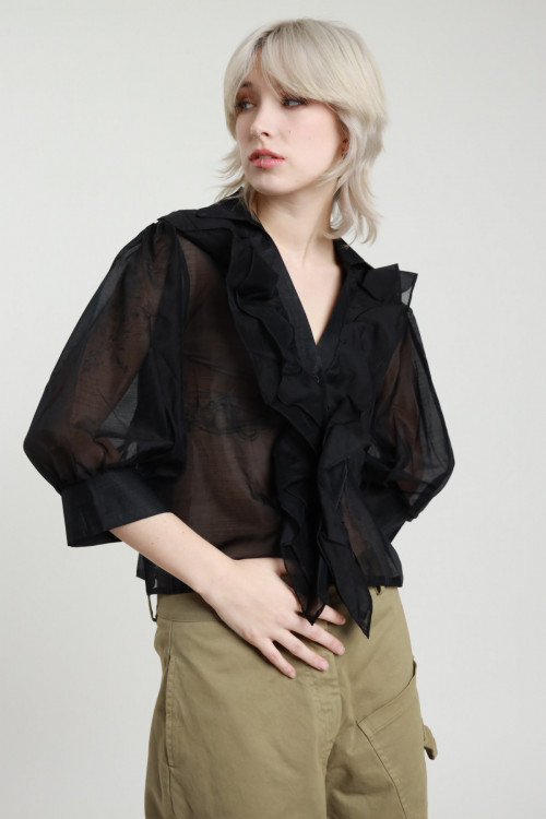 Camicia Semitrasparente con Rouches sui Polsi in Fantasia Floreale.