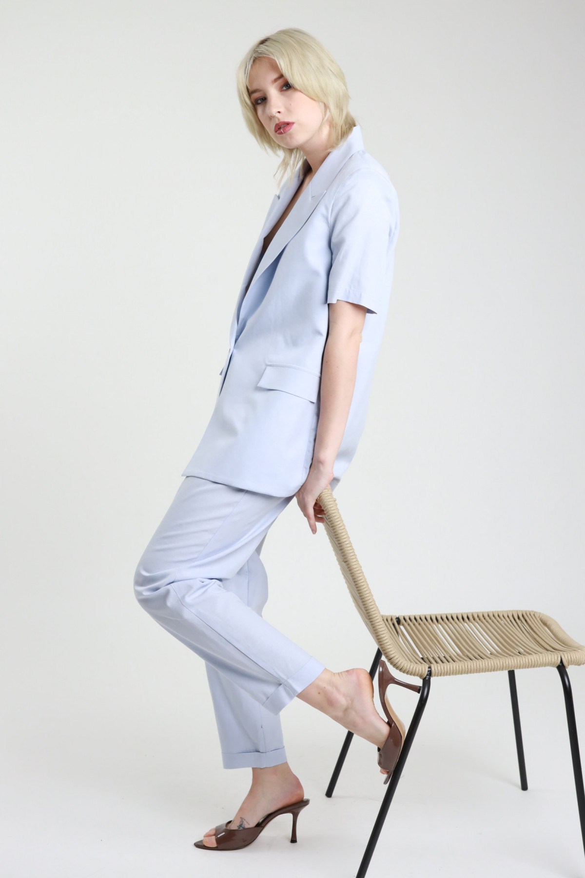 Completo Composto da Gilet con Spilla Fiocco Rimmovibile + Pantaloni Over con Doppia Pences, Elastico in Vita e Tasche Laterali.