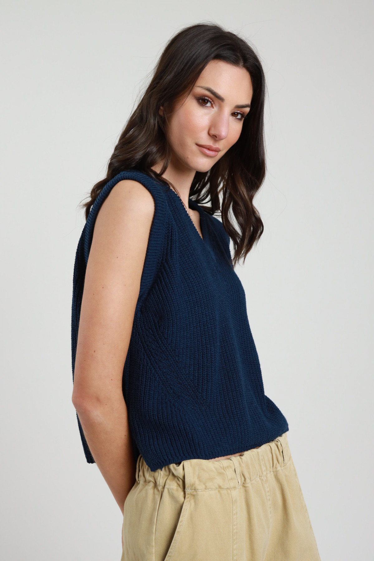 Pullover aus Viskose, V-Ausschnitt mit Ausschnitt an den Schultern. 65 % vi 35 % pa