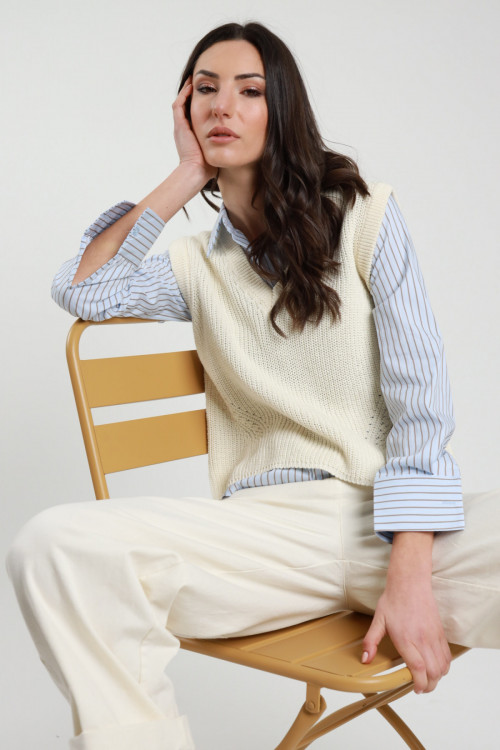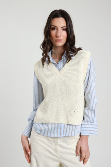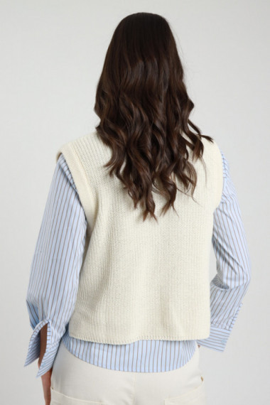 Übergroße Weste aus gestreiftem, perforiertem Strick. 50 % CO 50 % AC