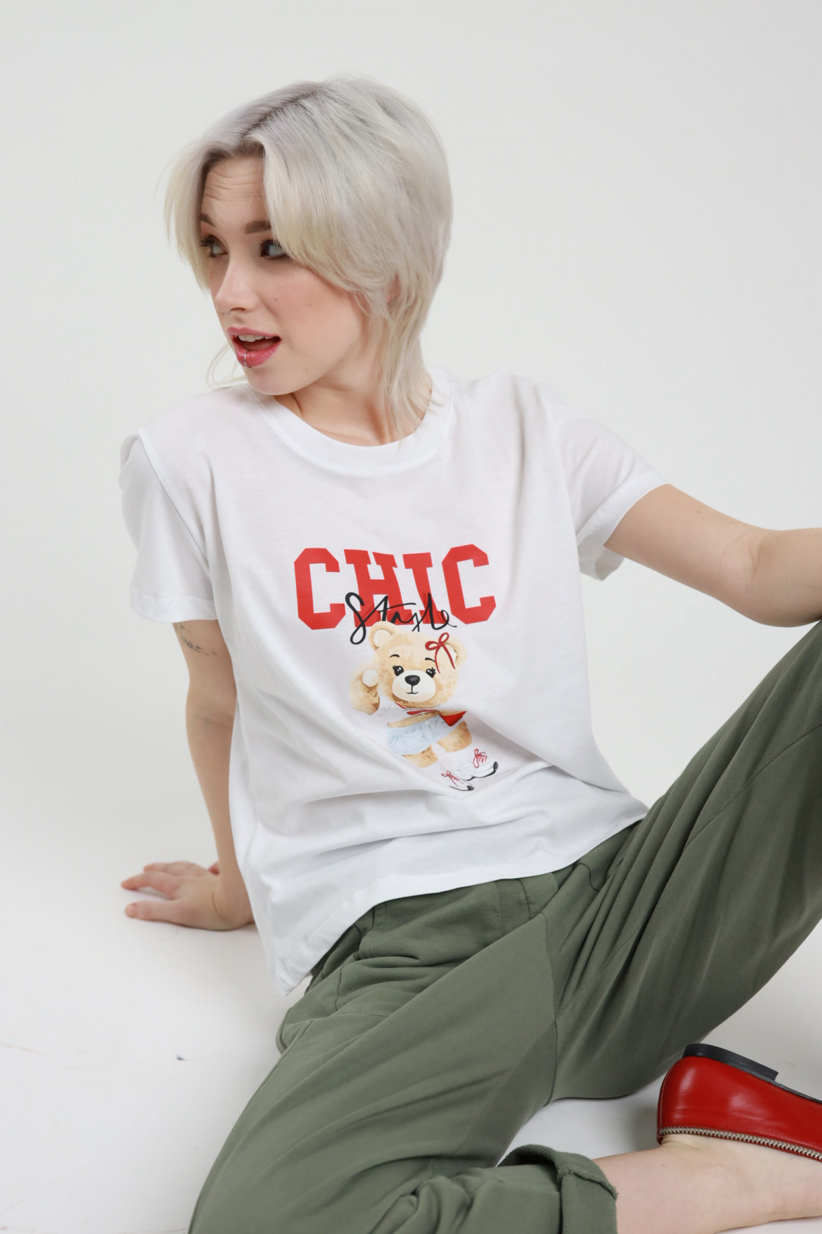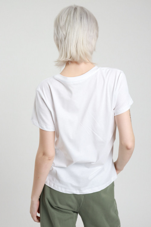 T-Shirt Over, Girocollo Moribo, Manica Extra Stampa Con Angelino e Scritta "Los Angeles With Love". 94%co 6%ea