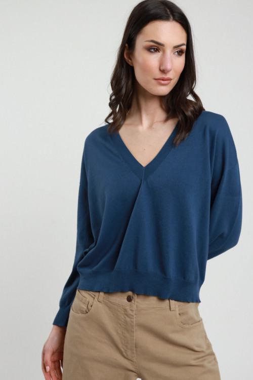 Baumwollpullover mit V-Ausschnitt und gerippten Kanten. 100 % co