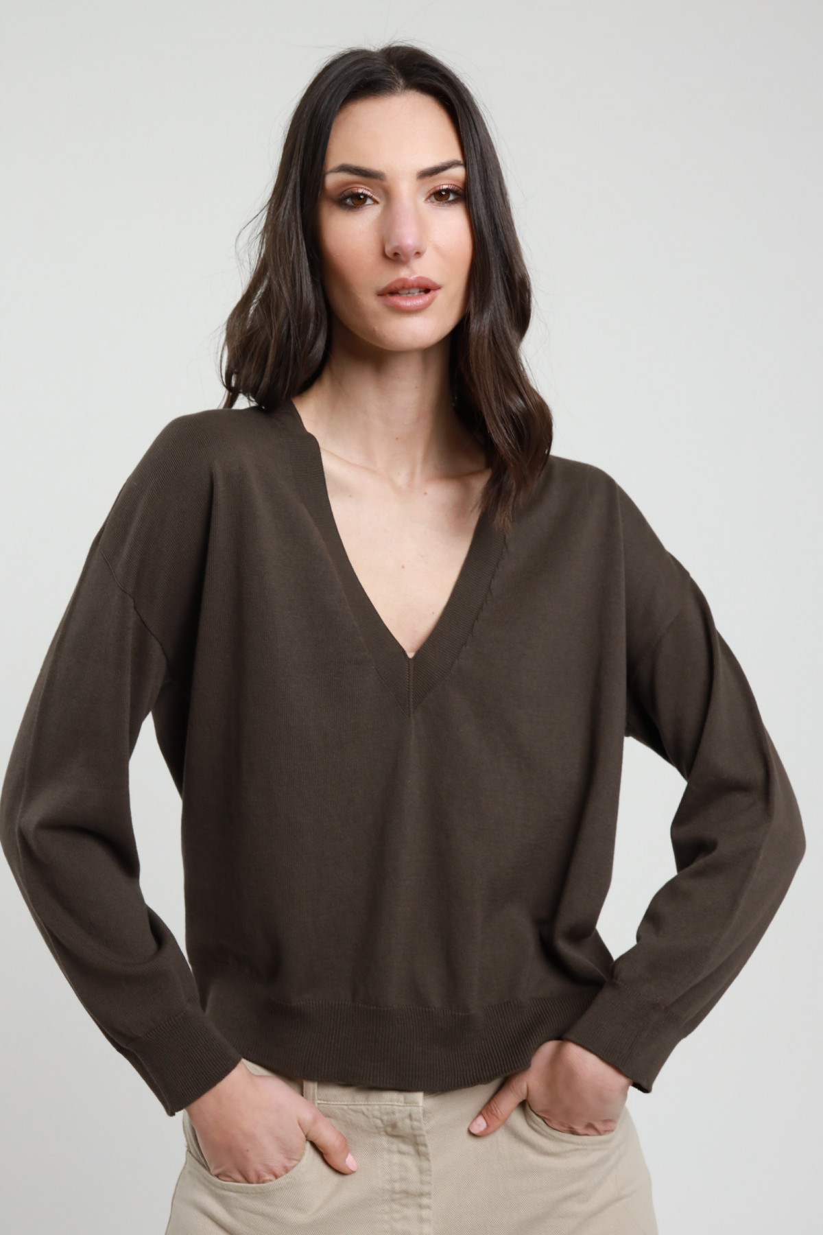 Baumwollpullover mit V-Ausschnitt und gerippten Kanten. 100 % co