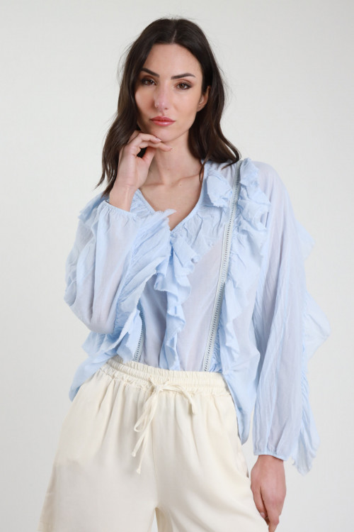 Übergroßes Hemd mit überschnittener Schulter, großer Tasche vorne und langen Ärmeln. 55 %li 45 %vi