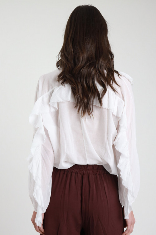 Übergroßes Hemd mit überschnittener Schulter, großer Tasche vorne und langen Ärmeln. 55 %li 45 %vi