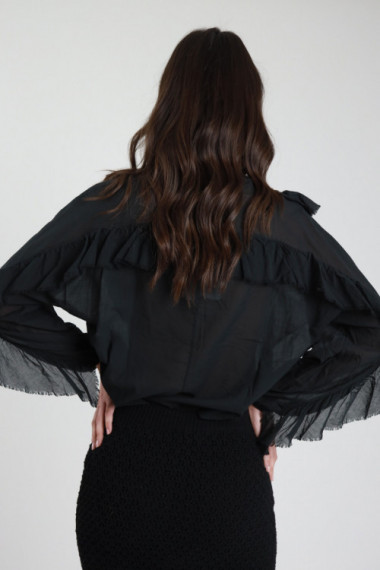 Übergroßes Hemd mit überschnittener Schulter, großer Tasche vorne und langen Ärmeln. 55 %li 45 %vi