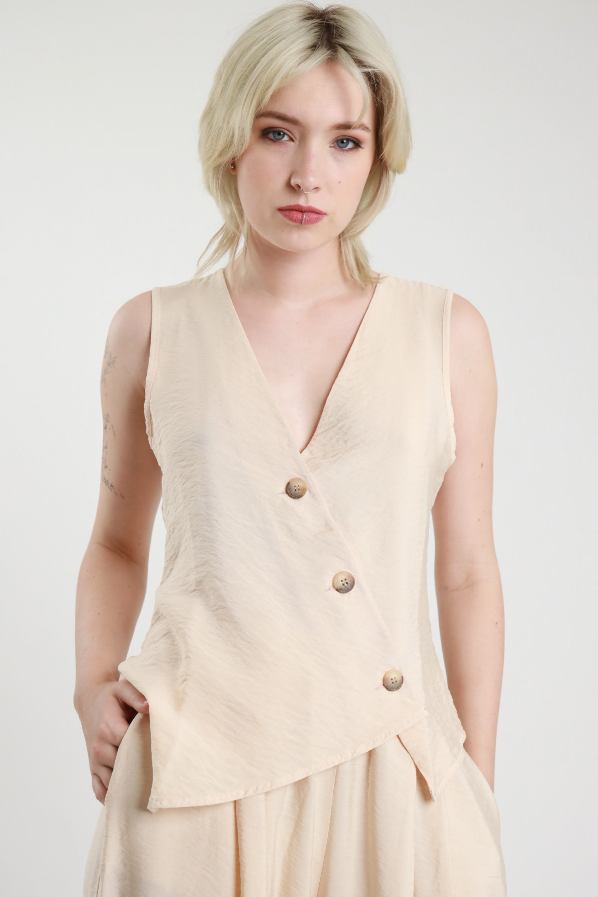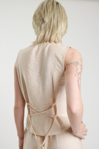 Wide palazzo trousers, elastic waist with drawstring, wallet pockets on the front and large square pockets on the back. 55%li 45%vi