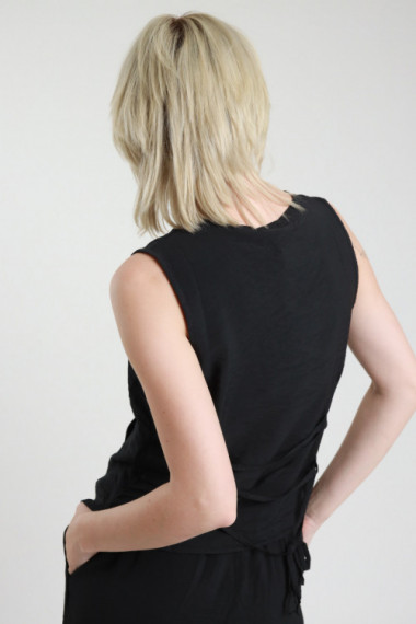 Wide palazzo trousers, elastic waist with drawstring, wallet pockets on the front and large square pockets on the back. 55%li 45%vi