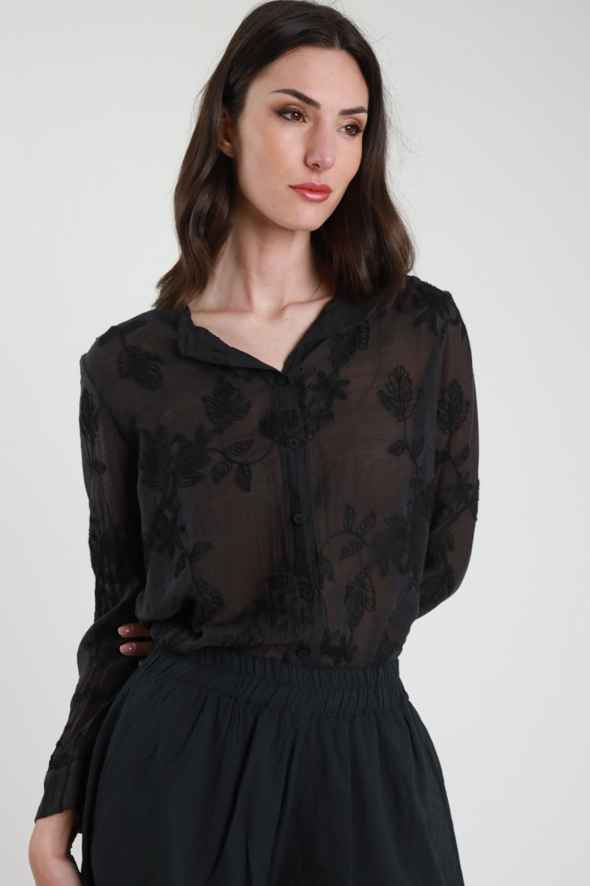 Wide palazzo trousers, elastic waist with drawstring, wallet pockets on the front and large square pockets on the back. 55%li 45%vi
