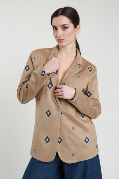 Blazer Monopetto in Ecodainetto con Ricami, Tasche con Pattina.