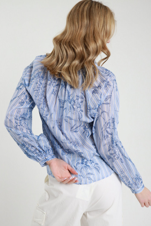 Blusa Scollo a V in Trasparenza con Rouges sul Davanti e Elastico e Volant sui Polsi. 100%pl
