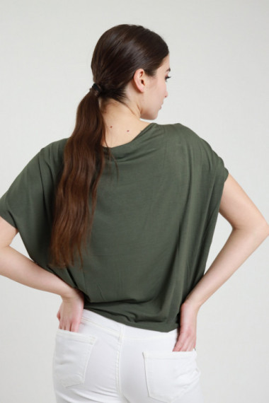 Maglia in Viscosa Elasticizzata con Maniche 3/4 e Cut-Out sulla Spalla con Accessorio Dorato. 94%vi 6%ea