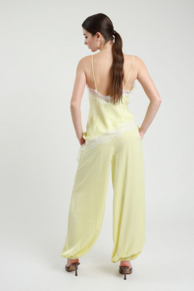 Pantalone Pinocchietto Stile Aladino in Viscosa Effetto Raso, Ampio a Palloncino con Elastici sul Fondo.