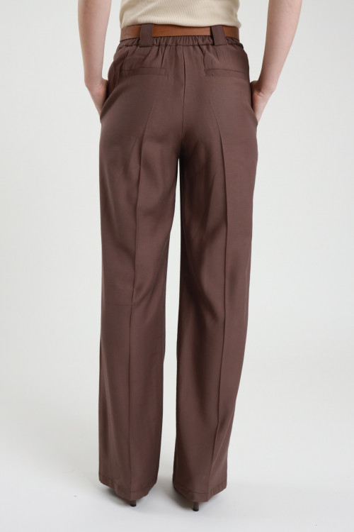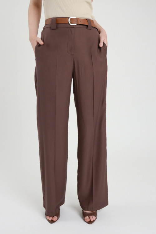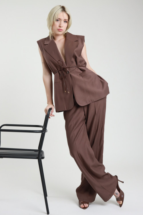 Wide palazzo trousers, elastic waist with drawstring, wallet pockets on the front and large square pockets on the back. 55%li 45%vi
