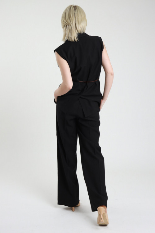 Wide palazzo trousers, elastic waist with drawstring, wallet pockets on the front and large square pockets on the back. 55%li 45%vi