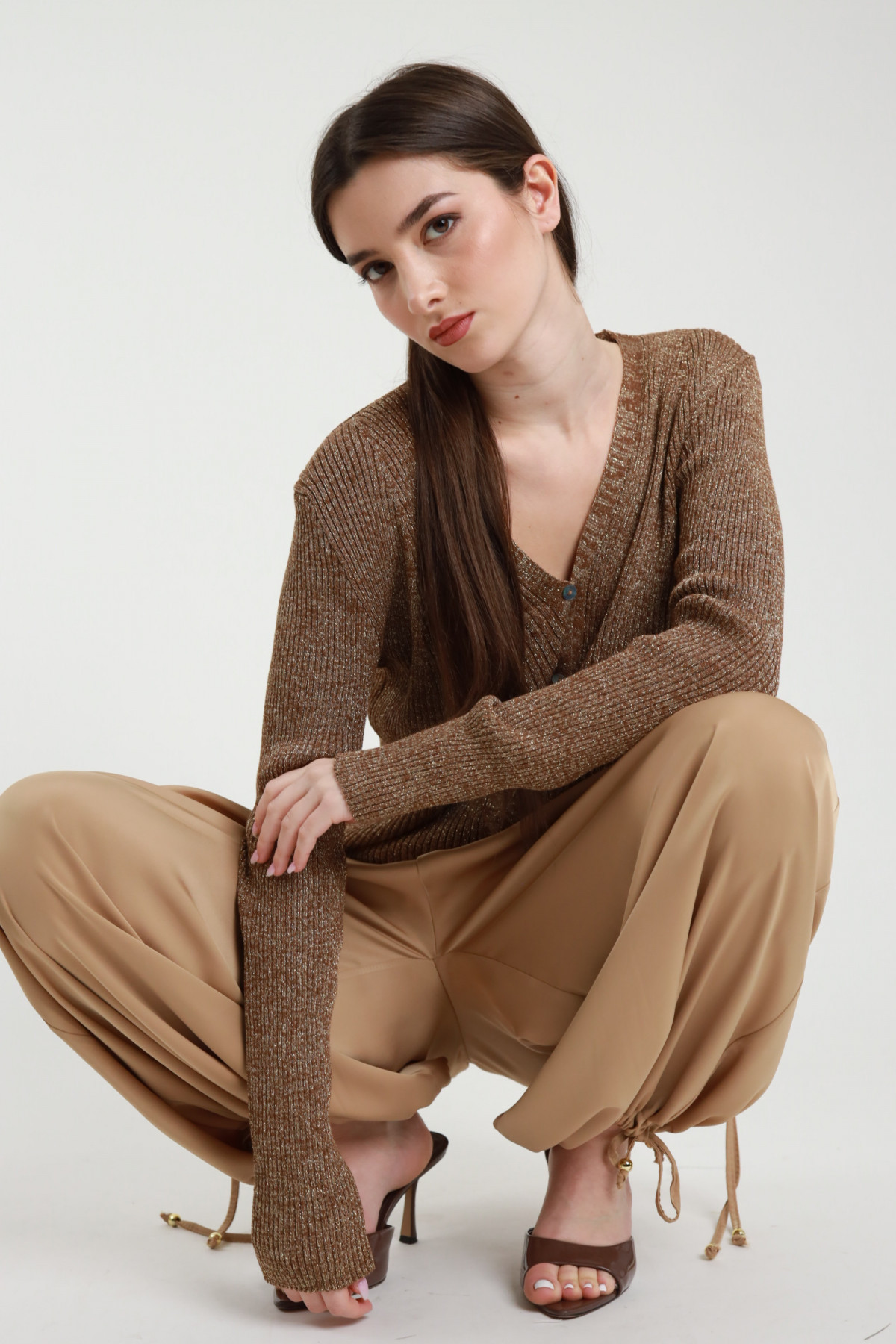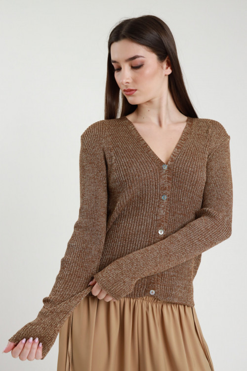 Gerippter Lurex-Cardigan mit Knopfverschluss. 90 %vi 8 %fm 2 %ea