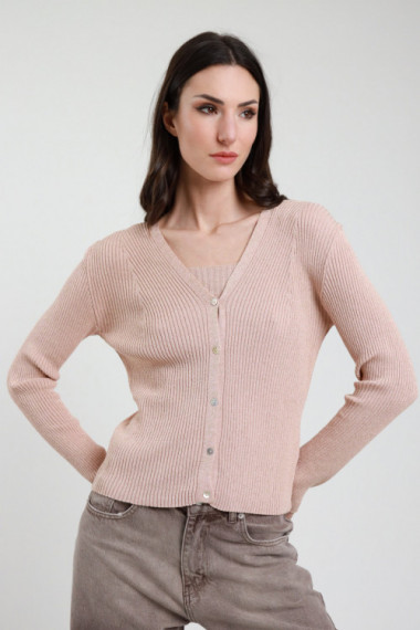Gerippter Lurex-Cardigan mit Knopfverschluss. 90 %vi 8 %fm 2 %ea