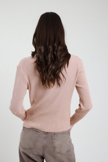 Maglia Rigata in Viscosa + Dettagli Bordi a Costine in Lurex.