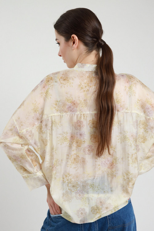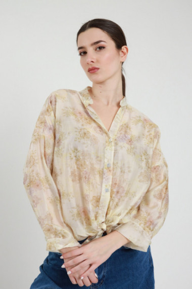 Camicia Semitrasparente in Fantasia Fiori con Nodo Rimovibile.