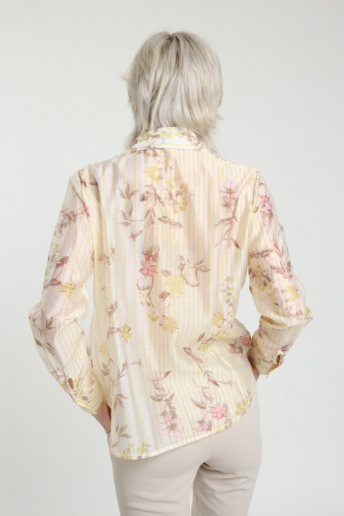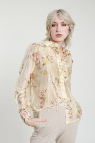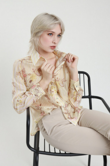 Transparentes Georgette-Hemd mit Spitzendetails an den Manschetten. 100 % vi