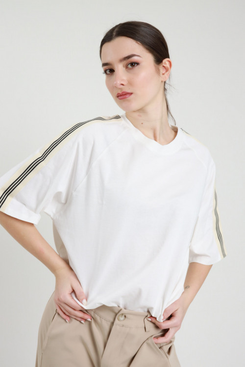 Übergroßes Baumwoll-T-Shirt mit Bändern an den Ärmeln. 100 % co
