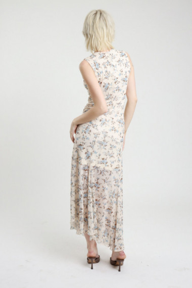 Abito Smanicato Midi in Maglia con Scollo Ampio sulla Schiena e Spacco in Fondo sul Retro.