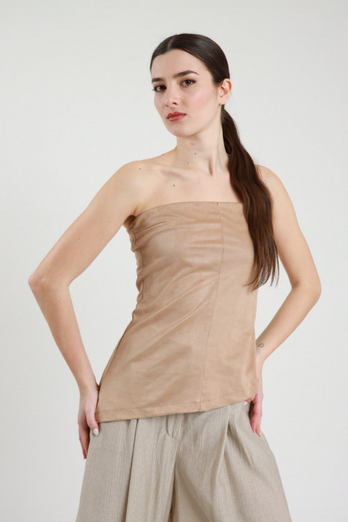 Asymmetrisches Bandeau-Top aus Öko-Dainetto mit Reißverschluss auf der Rückseite. 88 % pl 12 % Stück