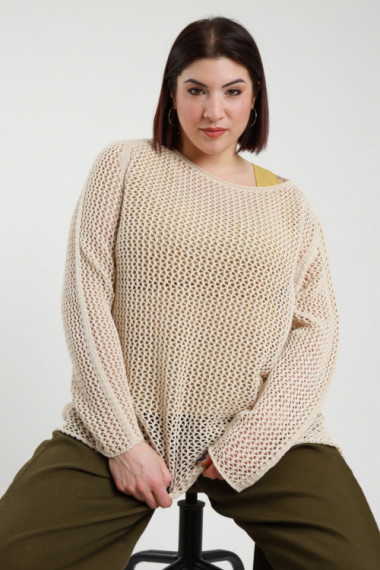 Pullover mit U-Boot-Ausschnitt, perforiert mit seitlichen Schlitzen an der Unterseite – Linie Curvy Susy Star. 100 % co