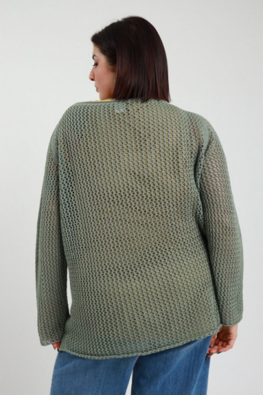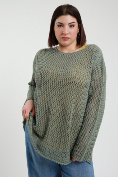 Leichter Pullover mit Rundhalsausschnitt und Mini-Perforationsstruktur, Oversize-Schnitt – Curvy Susy Star-Linie. 50%Co 50%Stk
