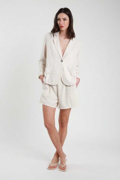 Shorts mit elastischem Bund und Geldbörsentaschen. 55 %li 45 %vi
